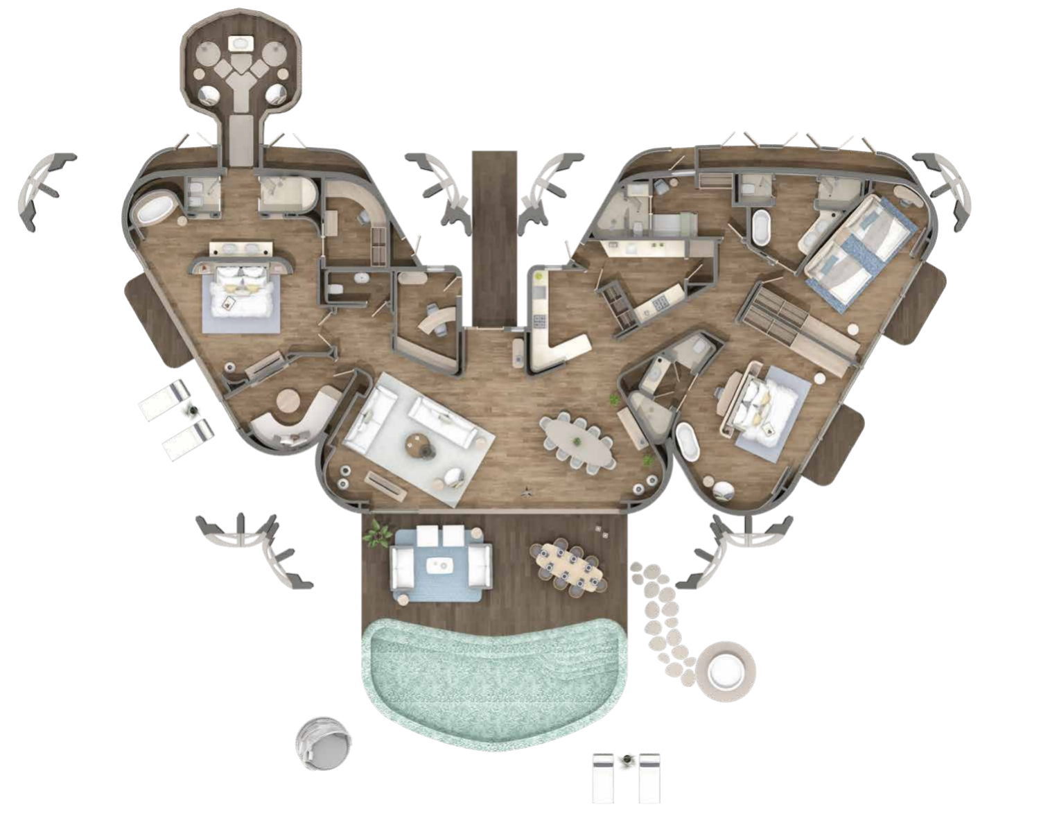 酒店之名“Nujuma”正是對這片天地的詩意詮釋——以星辰為引,邀旅人共赴一場探索未知群島的沉浸之旅。
