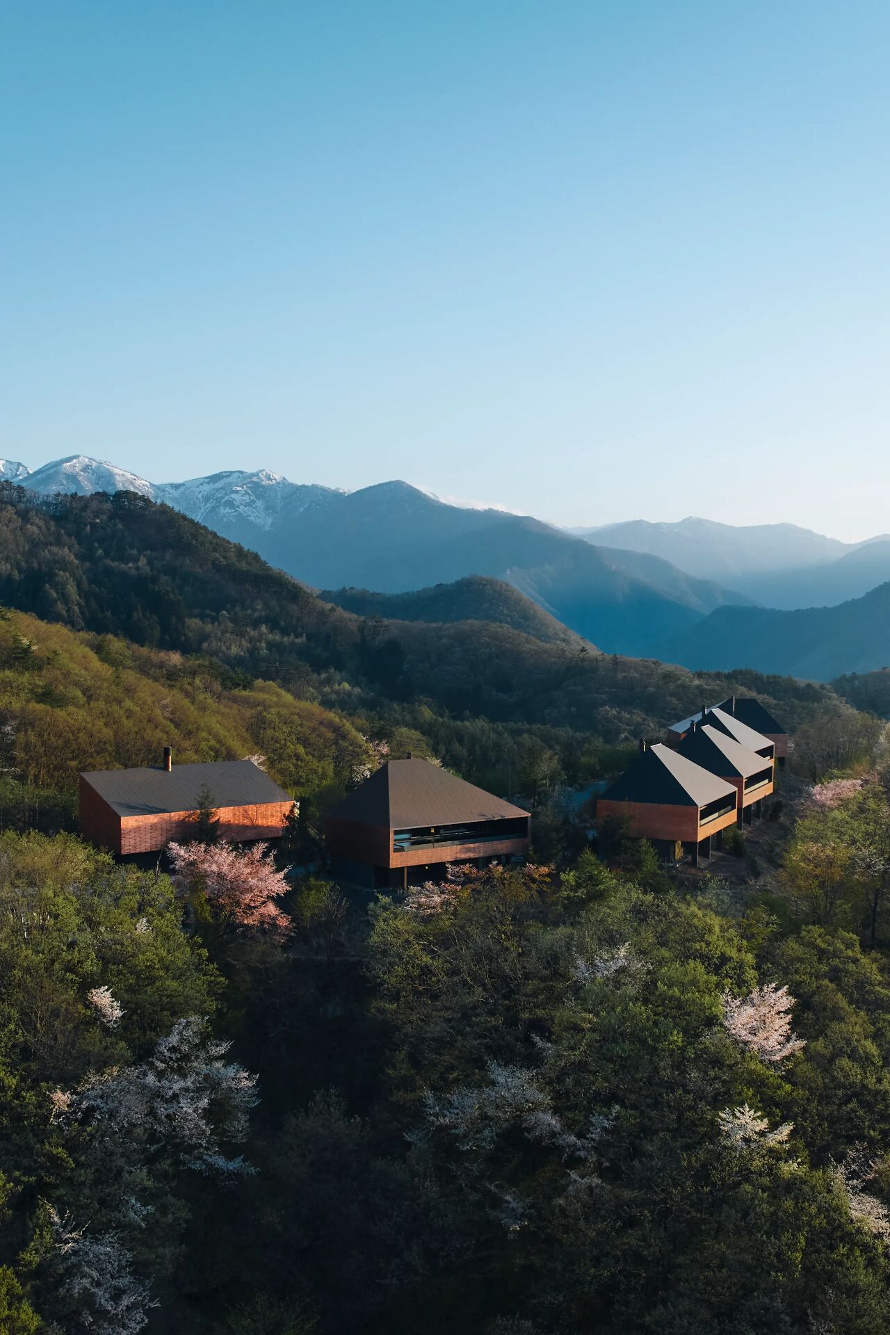 建筑扎根山體,卻向天空呼吸,在溫泉中仰望杉林流霧,在榻榻米上捕捉晨光碎片——禪意在此,是人與自然的共舞。