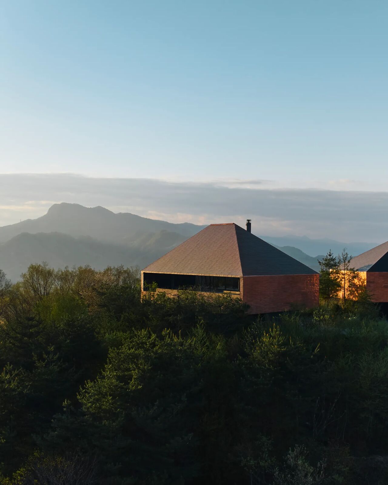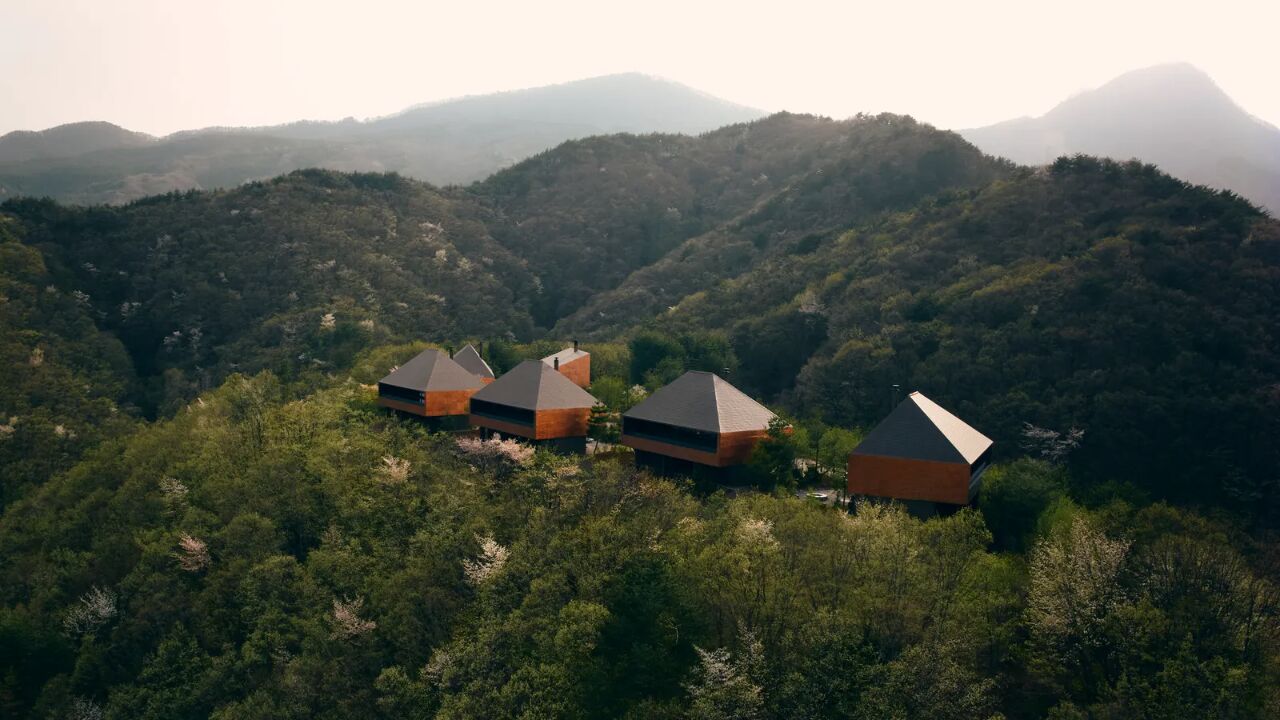 五棟銅板別墅依山脊呈北斗狀排列,設(shè)計(jì)師讓建筑成為山體的共生體。