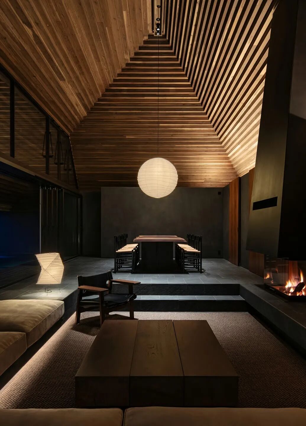 夜幕下,Akari紙燈暖光漫溢庭院,呼應(yīng)星河,轉(zhuǎn)譯傳統(tǒng)“緣側(cè)”的禪意。