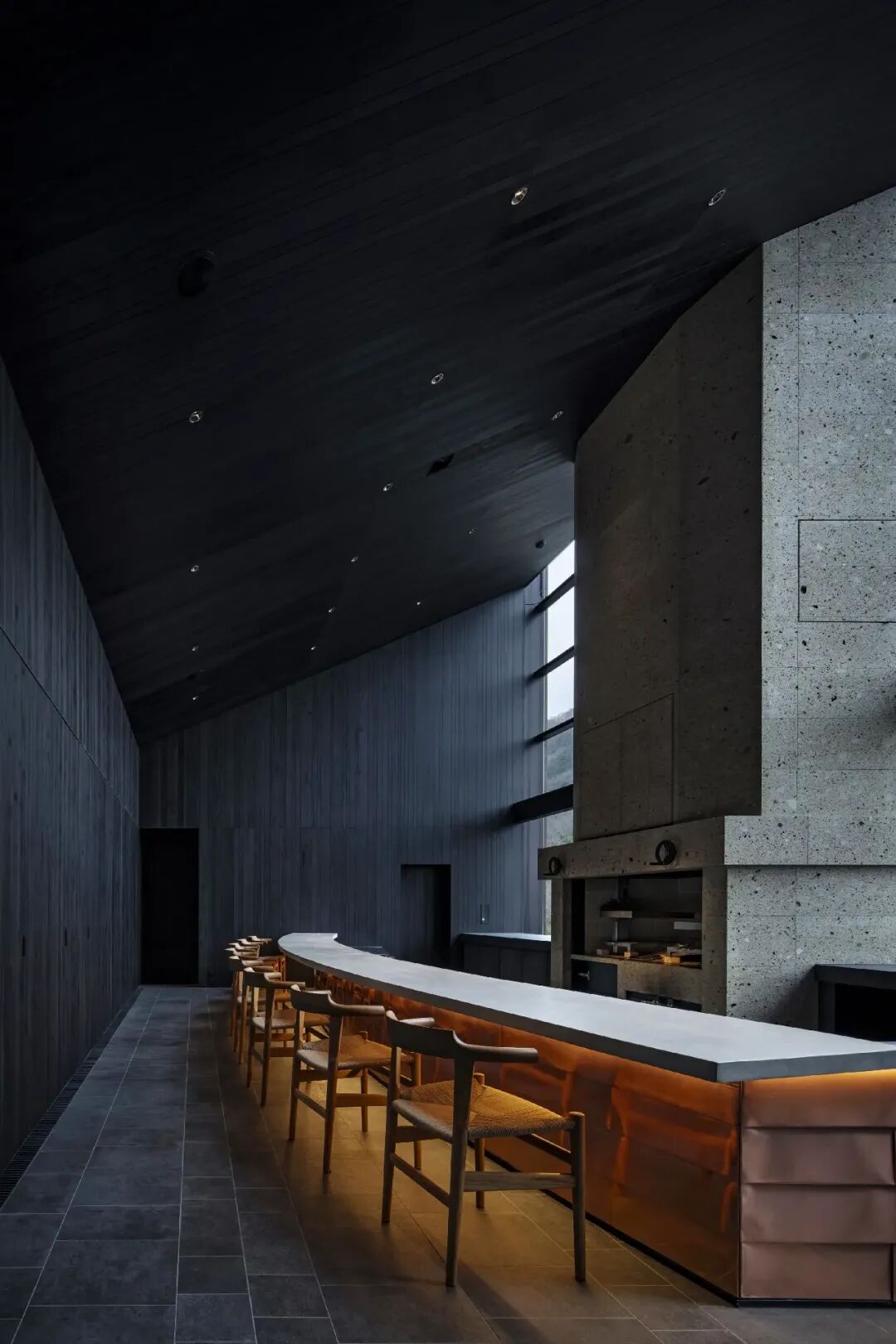 建筑的外立面銅板猶如時(shí)間的畫布般,初為玫瑰金,漸染青綠,終與苔蘚巖石融為一體。