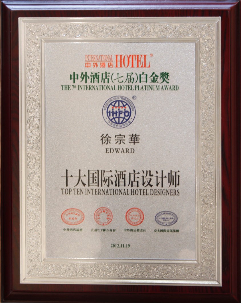 隨著2012年 11月19日榜單的發(fā)布,又一批優(yōu)秀的設(shè)計師脫穎而出,BJD酒店設(shè)計機(jī)構(gòu)徐宗華設(shè)計師榮獲“十大國際酒店設(shè)計師”,徐宗華設(shè)計師以精益求精自強(qiáng)不息的企業(yè)精神創(chuàng)造出不平凡的作品。